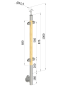 Dřevěný sloup, boční kotvení, výplň: sklo, průchozí, vrch nastavitelný (ø 42mm), materiál: buk, broušený povrch bez nátěru