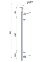 Nerezový sloup, boční kotvení, výplň: plech, levý, vrch pevný, (ø42.4x2 mm), broušená nerez K320 /AISI304