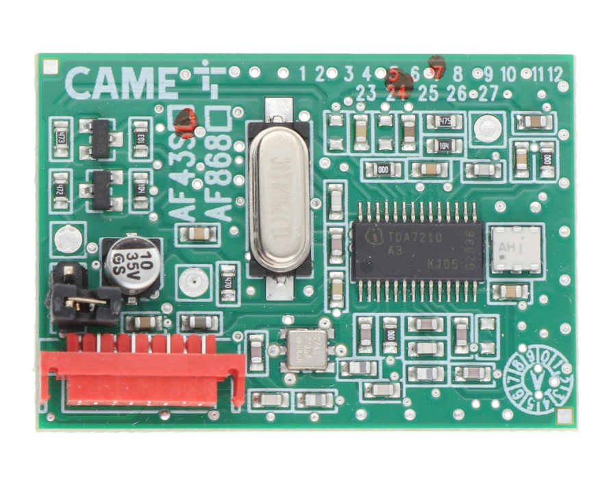 Přijímač CAME AF43S je navržený pro propojení s řídící jednotkou pohonů bran a garážových vrat. Umožňuje pohodlné dálkové ovládání pomocí kompatibilních ovladačů značky CAME. Díky stabilnímu signálu a bezpečnému přenosu zajišťuje spolehlivost a jednoduchost instalace v různých typech automatizačních systémů.