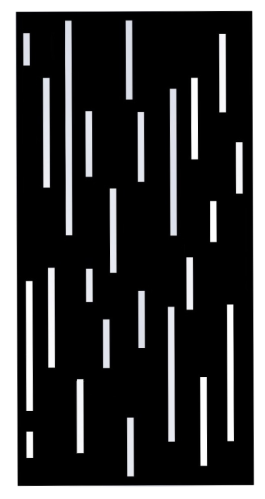 Designová kovová výplň, laserem vypálený vzor 8212, rozměr 1000x2000x2,0 mm +/- 0,5%, výška výpalku 34 mm, bez povrchové úpravy, perforace 14%