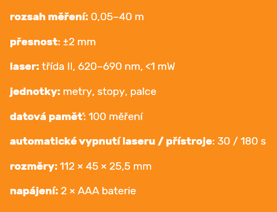 Dálkoměr laserový, 40m
