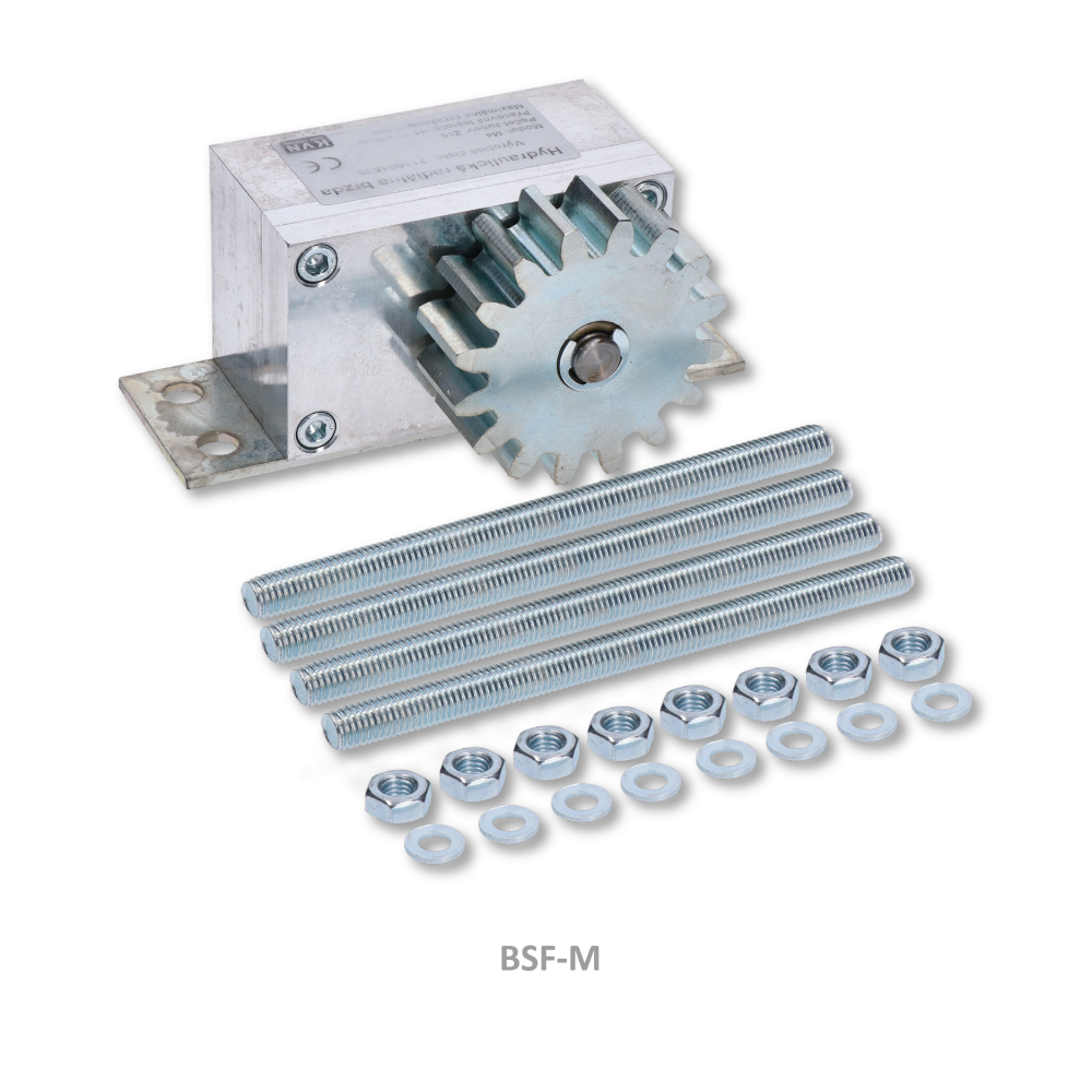 Hydraulická brzda pro posuvné brány ve svahu, radiální brzda BSF-M s ozubeným pastorkem MODUL M4 (16 zubů), je určena k nepřetržité kontrole rychlosti pohybu posuvných bran. Tato brzda je ideálním řešením pro brány instalované ve svahu, kde reguluje a kontroluje zavírací rychlost po celé délce dráhy brány. Zajišťuje bezpečnost zejména po odblokování pohonu, například při výpadku elektrické energie.