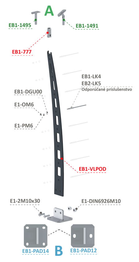 Kotvící příruby: EB1-PAD12 nebo EB1-PAD14 – pro bezpečné a pevné přichycení k podkladu