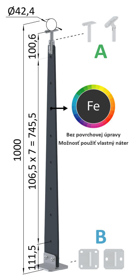 Kombinovaný Fe vypalovaný sloup, vrchní kotvení, 8-dírový