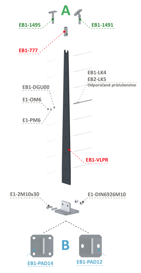 Držáky výplní: EB1-1495 nebo EB1-1491 (výběr dle potřeby projektu)