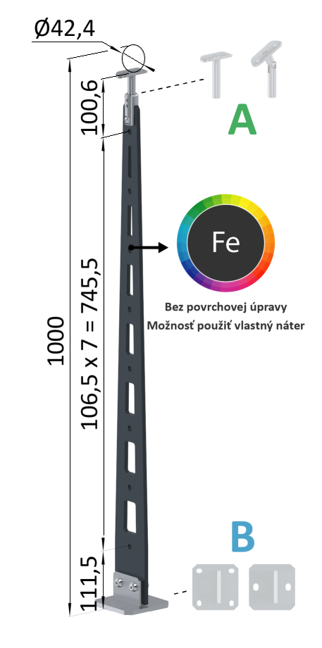 Kombinovaný Fe vypalovaný sloup, vrchní kotvení, 8-dírový