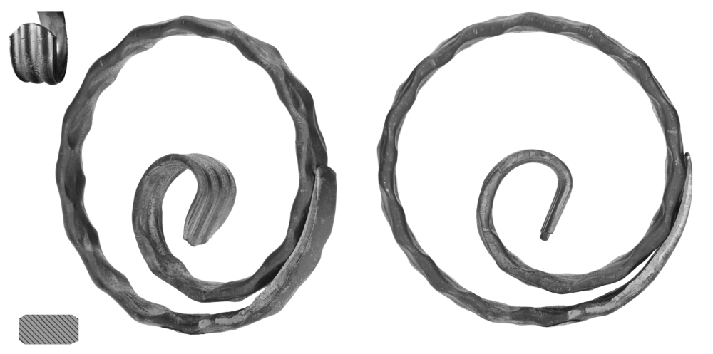 Estetický kovový polotovar určeny pro výrobu a zdobení kovaných bran, plotů nebo zábradlí. Je vyroben z pásoviny 12 x 6 mm, což zajišťuje nejen pevnost, ale i zajímavý vzhled díky plastičnosti materiálu. Uvedena cena je za 1 kus.