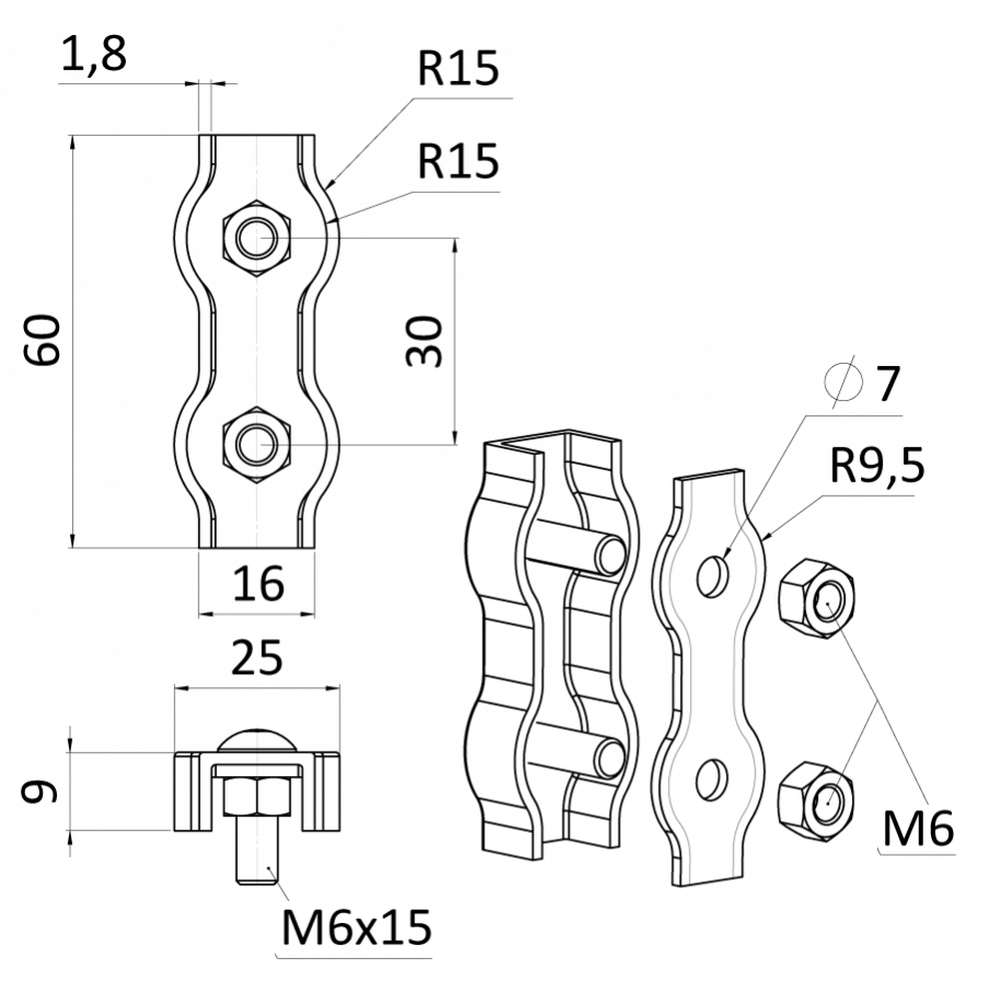 Dvojitá lanková svorka (duplex) je určena pro spojování a upevňování nerezových lan o průměru 6 mm. Je vyrobena z kvalitní broušené nerezové oceli AISI 304 s povrchovou úpravou K320, která zajišťuje vysokou odolnost vůči korozi, mechanickému opotřebení a povětrnostním vlivům. Konstrukce svorky umožňuje pevné a stabilní uchycení lanek ve stavebních, architektonických a zábradelních systémech.