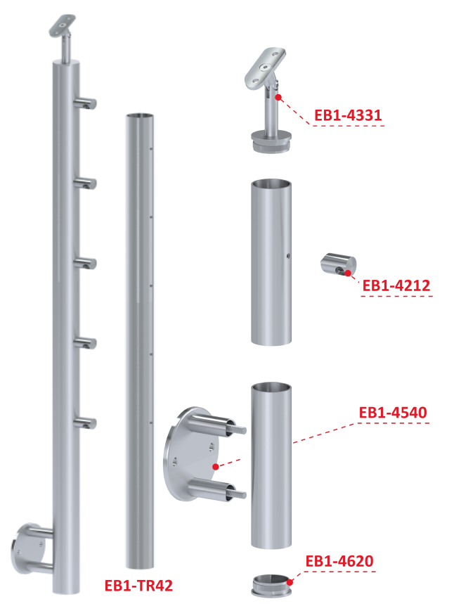 Různé velikosti: Sloup je dostupný v různých výškách, od 900 mm do 1200 mm, což umožňuje jeho použití pro zábradlí na různých typech schodišť, balkónů, teras nebo jiných architektonických prvků.