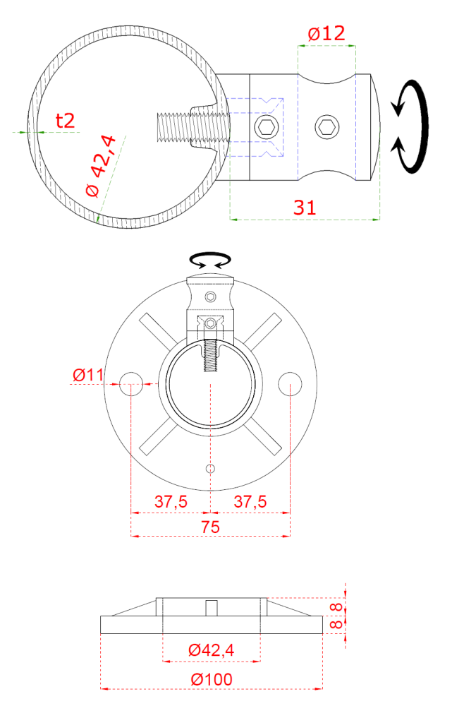 Nastavitelný vrch: Díky možnosti nastavení vrchní části sloupu je instalace flexibilní a snadno přizpůsobitelná různým typům a výškám zábradlí. To umožňuje přesné doladění celého zábradlového systému podle konkrétních požadavků.