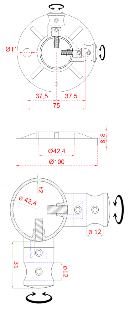 Rozměry: Ø 42,4 mm x 2 mm (průměr x tloušťka stěny)