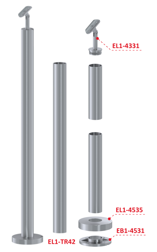 Různé velikosti: Sloup je dostupný v různých výškách, od 900 mm do 1080 mm, což umožňuje jeho použití pro zábradlí na různých typech schodišť, balkónů, teras nebo jiných architektonických prvků