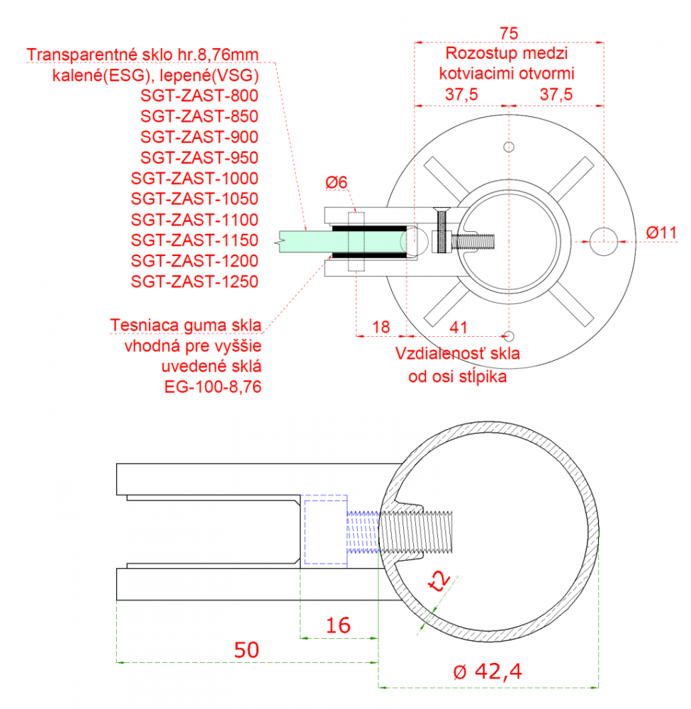 Sloup je konstruován jako levý, což znamená, že je určen pro montáž na levou stranu systému, kde slouží k ukotvení skleněných výplní zábradlí. Úchytky jsou pevně připojeny k tělu sloupu a umožňují bezpečné a estetické uchycení skleněných panelů, které nejen poskytují maximální průhlednost, ale také zajišťují bezpečnost a stabilitu celé konstrukce. Pevný vrch sloupu přispívá k jeho celkové robustnosti a stabilitě, a je tedy ideálním řešením pro zábradlí, která mají být vystavena zvýšenému zatížení. Vrchní kotvení umožňuje jednoduchou a stabilní instalaci sloupu na jakýkoliv podklad, což je klíčové pro dlouhodobou spolehlivost zábradlí. Skleněné panely jako výplň slouží k zajištění elegantního, vzdušného a transparentního vzhledu, díky kterému zábradlí nenarušuje výhled a zároveň vytváří moderní estetický prvek jak ve vnějších, tak vnitřních prostorech.