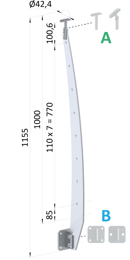 Průměr pro madlo: ø 42,4 mm