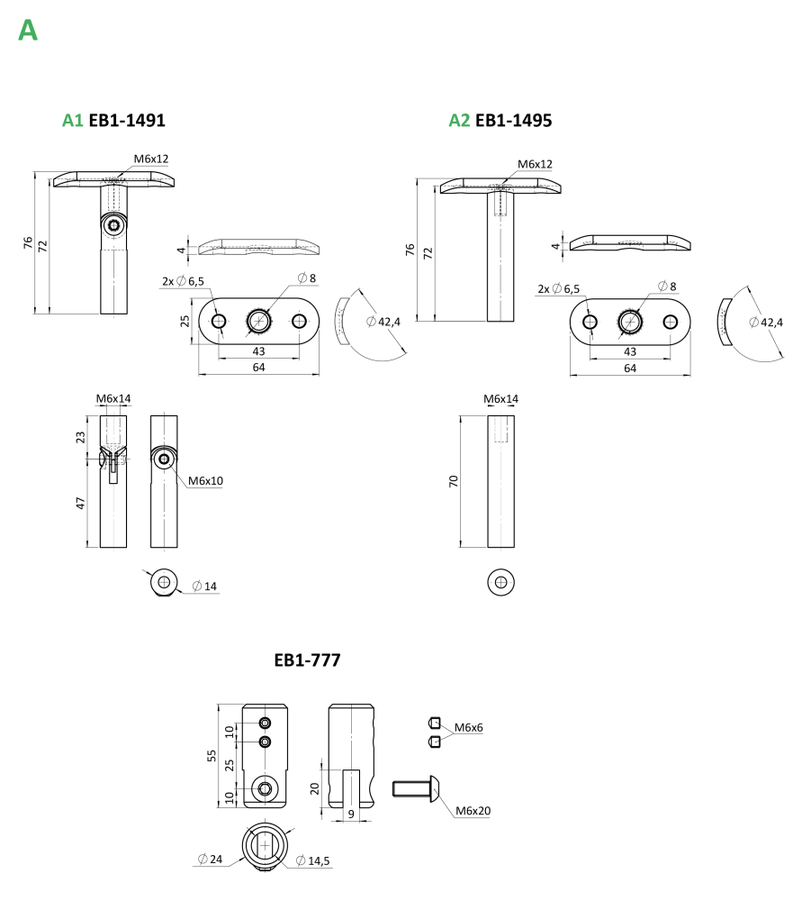 Nerezový sloup z oceli AISI 304 s matným broušeným povrchem pro vrchní kotvení přes pevnou desku připevněnou přímo ke sloupu. Obsahuje 8 laserově vyřezaných otvorů pro stabilní upevnění lanek v moderních zábradlích.