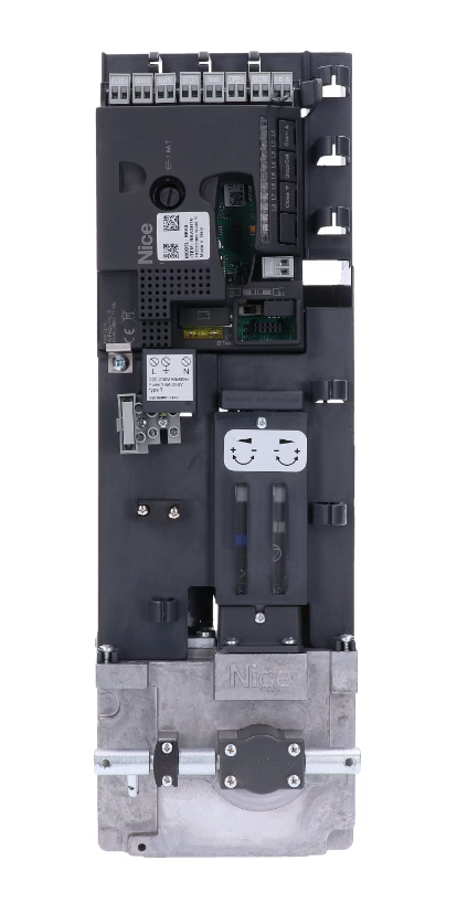 Podpora moderních směrů Nice: Motor podporuje nejmodernější směry Nice, včetně BLUEBUS pro snadné zapojení až 7 párů fotobuněk, SOLEMYO pro provoz bez přívodu 230 V a OPERA pro snadné naprogramování různých funkcí.