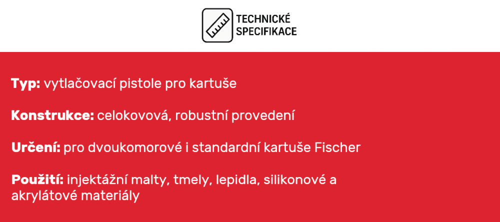 Vytlačovací pistole FIS AM od výrobce Fischer je robustní profesionální nástroj určený pro aplikaci různých typů kartuší na stavbě i v dílně. Díky celokovové konstrukci je pistole velmi odolná a spolehlivě zvládá i náročné podmínky při každodenním používání. Pistole je kompatibilní s různými typy kartuší, včetně dvoukomorových a běžných silikonových i akrylátových