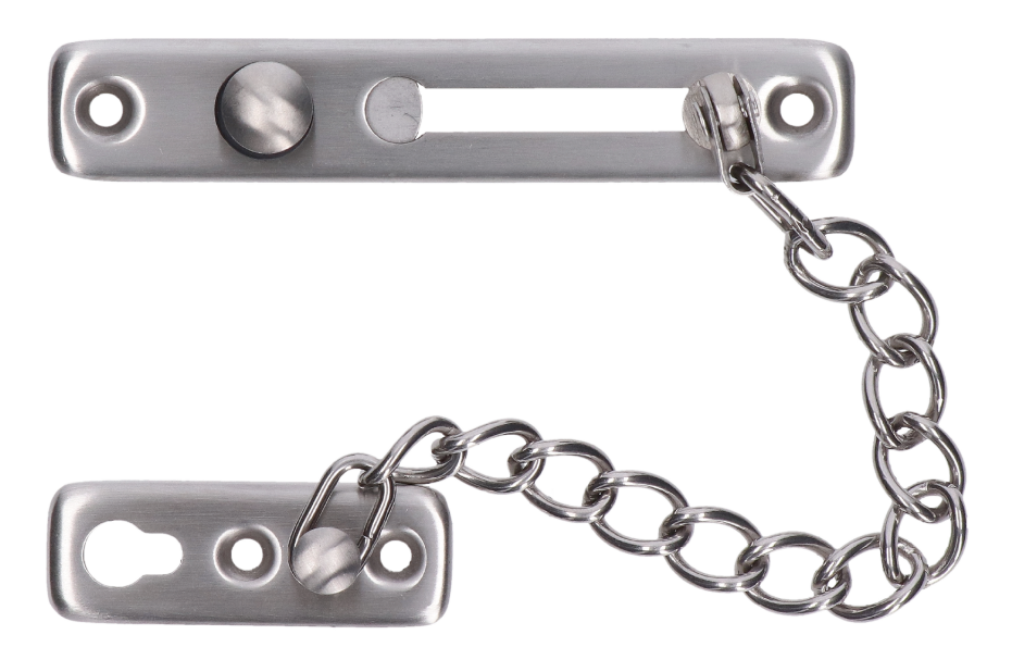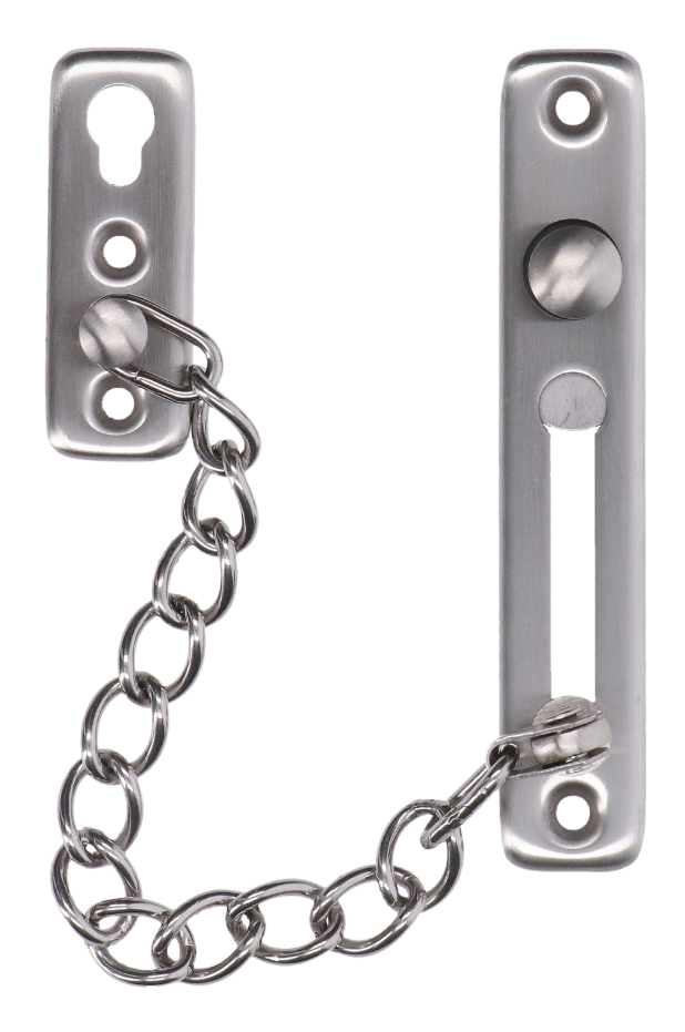Kvalitní bezpečnostní řetízek na dveře vyrobený z nerezové oceli AISI 304 s broušeným povrchem (K320). Ideální pro zvýšení bezpečnosti vstupních dveří. Umožňuje částečné pootevření dveří bez možnosti jejich úplného otevření zvenčí.