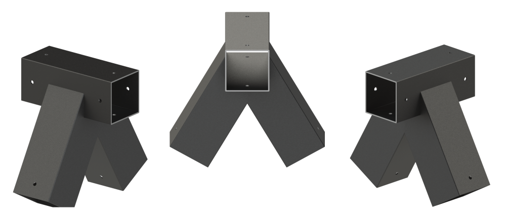 Rohová spojka na houpačku je vyrobena z pozinkované oceli, která zaručuje dlouhou životnost a odolnost proti korozi. Spojka je určena pro hranoly o rozměru 100 x 100 mm, které je třeba na koncích jemně zbrousit pro správné usazení spojky. Díky navrtaným otvorům o průměru 8,5 mm je možné snadné uchycení hranolu pomocí vhodných šroubů. Úhel mezi nosníky je 60°, což umožňuje pevné a stabilní spojení částí konstrukce.