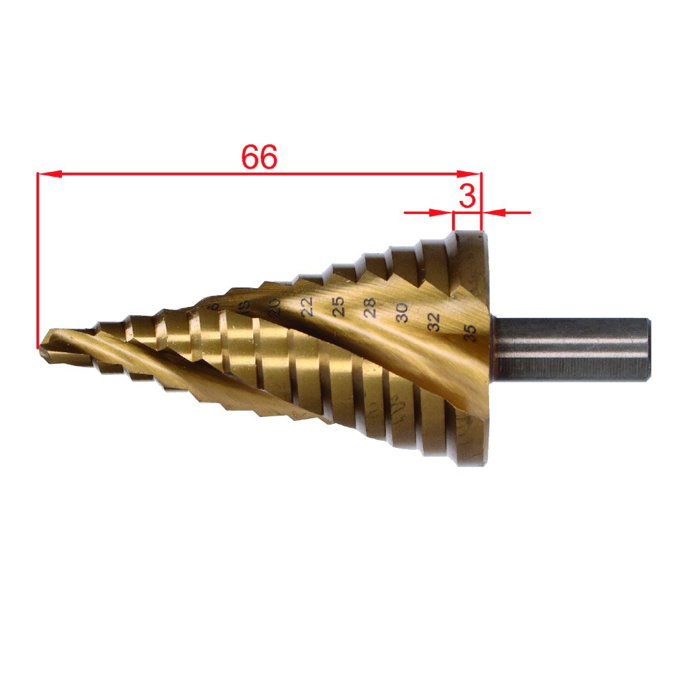 Stupňovitý kuželový vrták HSS M35 TiN 6-35, 3 ploché boční úchopy
