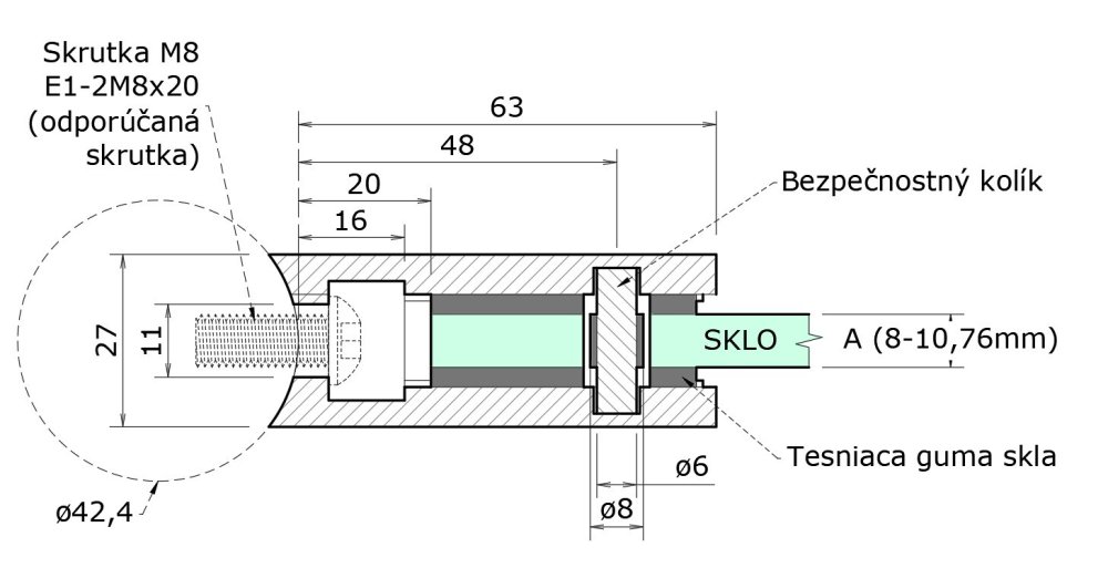 Kompatibilita: Navrženo pro trubky o průměru 42,4 mm a skleněné panely. Gumičky odpovídající tloušťce skla je třeba dokoupit samostatně (nejsou součástí balení).